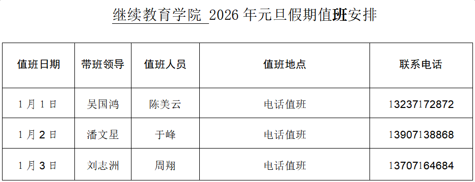 继续教育学院2026年元旦假期值班安排