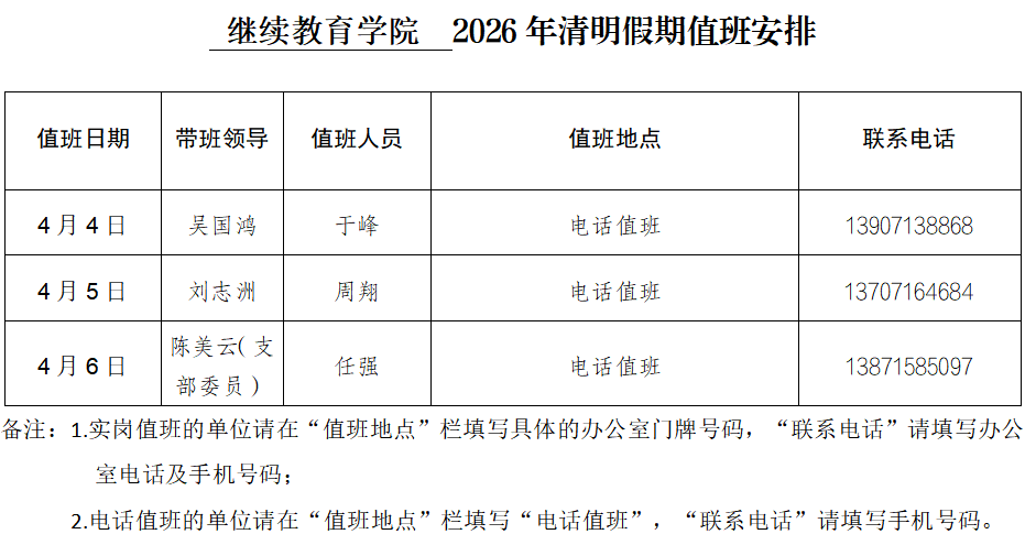 2026年清明假期值班安排